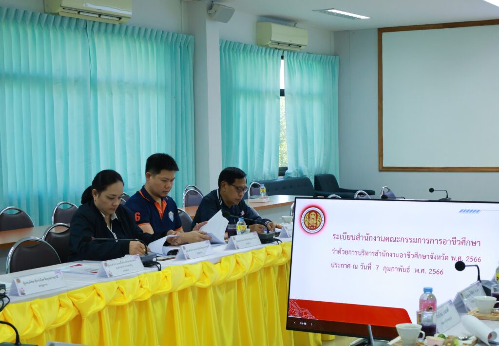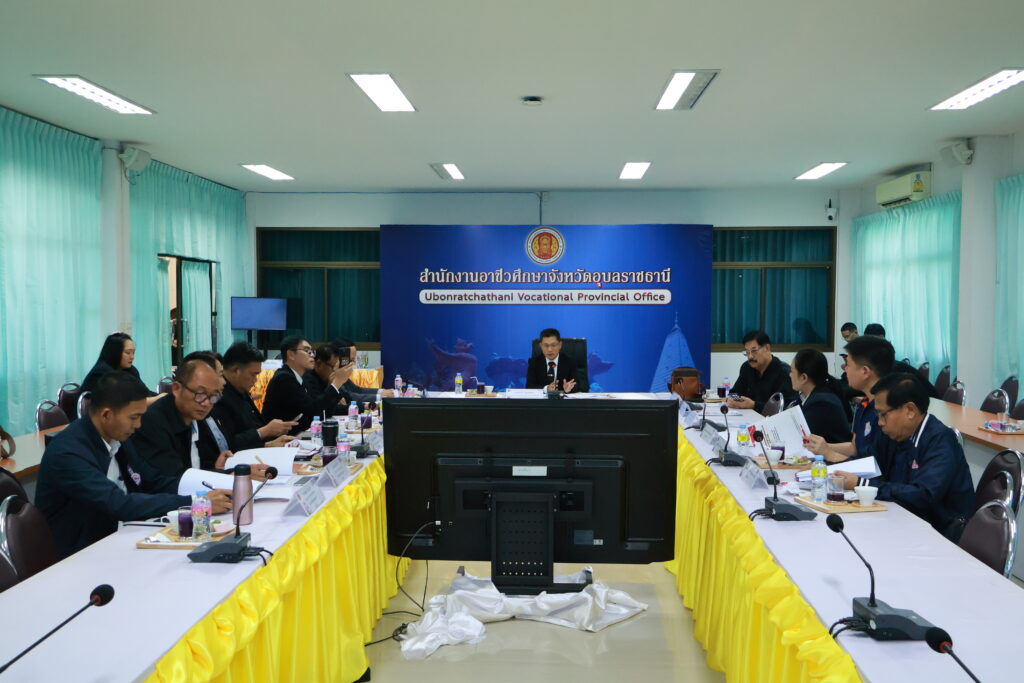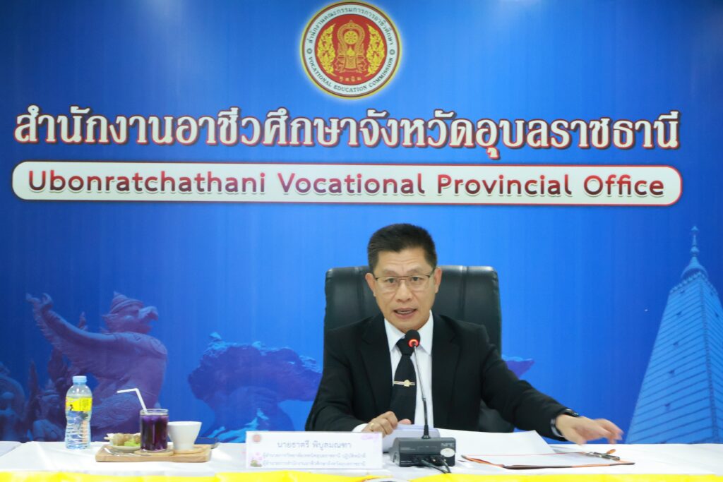 โดยมีนายธาตรี พิบุลมณฑา ผู้อำนวยการวิทยาลัยเทคนิคอุบลราชธานี ปฏิบัติหน้าที่ผู้อำนวยการสำนักงานอาชีวศึกษาจังหวัดอุบลราชธานี เป็นประธานในการประชุม