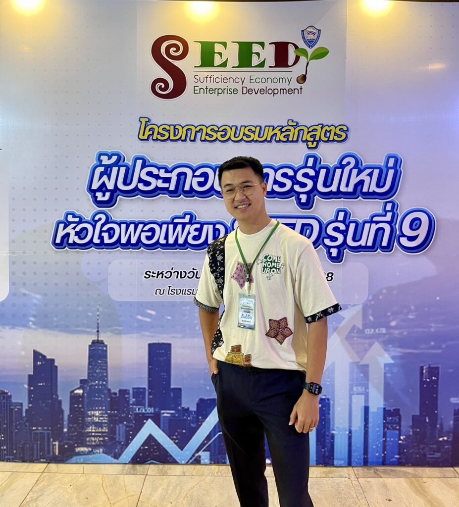 นายศิวาวุฒิ ว่องไว รองประธานกรรมการหอการค้าจังหวัดอุบลราชธานี/ประธานกลุ่มนักธุรกิจรุ่นใหม่ YEC อุบลราชธานี เป็นผู้เข้าร่วม โครงการอบรมหลักสูตรผู้ประกอบการรุ่นใหม่หัวใจพอเพียง รุ่นที่ 9 (SEED9)