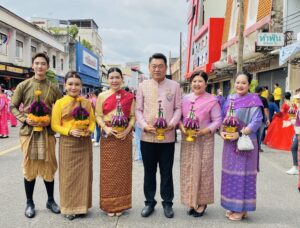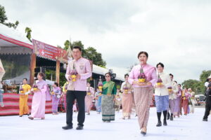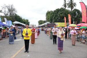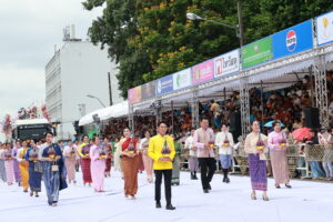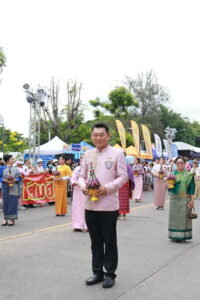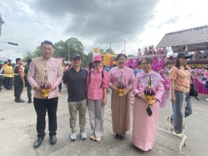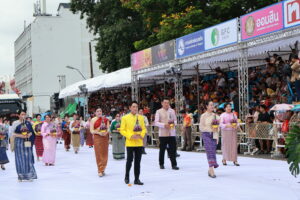 หอการค้าจังหวัดอุบลราชธานี นำโดยนายรัฐธนินท์ เตชะไชยสิทธิ์ ประธานกรรมการหอการค้าจังหวัดอุบลราชธานี พร้อมด้วยนางภัทรนิษฐ์ เตชะไชยสิทธิ์ กรรมการกลางหอการค้าจังหวัดอุบลราชธานี เป็นผู้เข้าร่วมเป็นเกียรติในประเพณีแห่เทียนพรรษาจังหวัดอุบลราชธานี ประจำปี 2568 พิธีเชิญเทียนพรรษาพระราชทานและผ้าอาบน้ำฝนพระราชทาน
