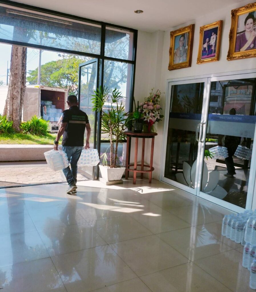 หอการค้าจังหวัดอุบลราชธานี มอบน้ำดื่ม จำนวน 100 แพ็ค ให้กับสำนักงานสาธารณสุข จังหวัดอุบลราชธานี เพื่อนำไปช่วยเหลือผู้อพยพจากสถานการณ์ความไม่สงบตามแนวชายแดนไทย – กัมพูชา