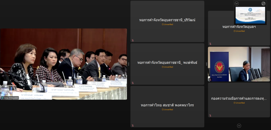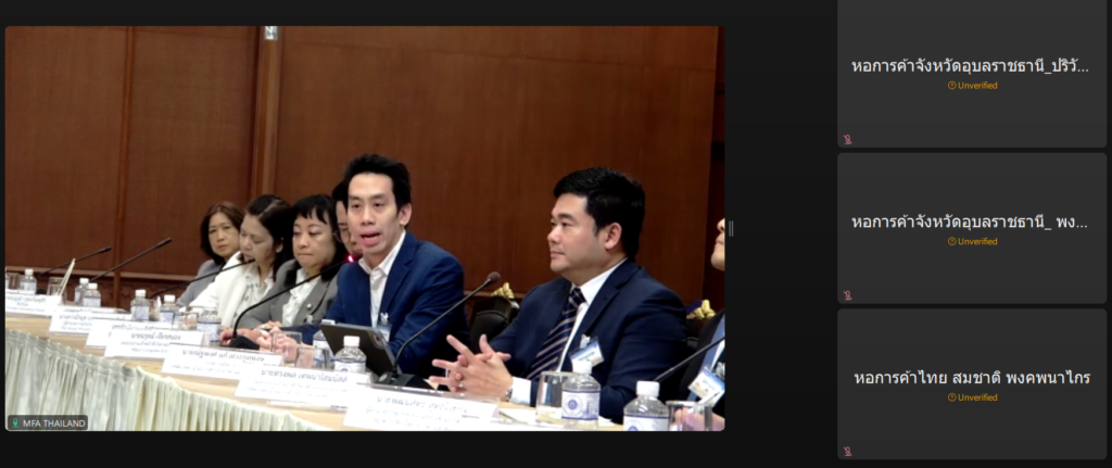 หอการค้าจังหวัดอุบลราชธานี นายรัฐธนินท์ เตชะไชยสิทธิ์ ประธานกรรมการหอการค้าจังหวัดอุบลราชธานี มอบหมายให้ นายพงษ์พันธ์ จันทศรี รองประธานกรรมการหอการค้าจังหวัดอุบลราชธานี นายปริวัฒน์ ทองแสง กรรมการเลขาธิการหอการค้าจังหหวัดอุบลราชธานี เป็นผู้เข้าร่วม โดยมีนายสีหศักดิ์ พวงเกตุแก้ว รัฐมนตรีว่าการกระทรวงการต่างประเทศ เป็นประธาน