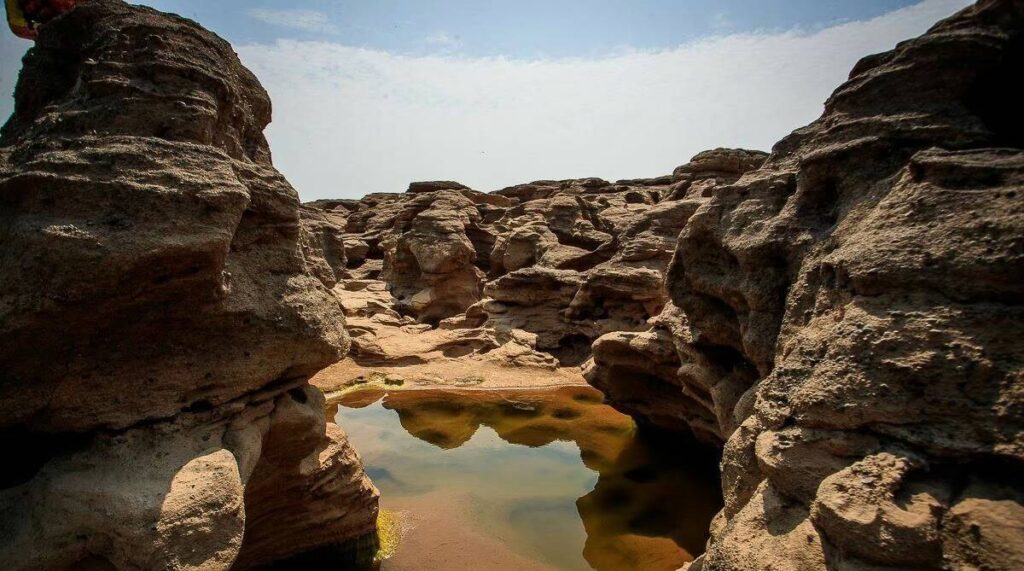 หาดทรายและแก่งหินที่โผล่พ้นน้ำในฤดูแล้ง สร้างทัศนียภาพเหมือน “มินิแกรนด์แคนยอน” ให้เราได้เดินเล่น ถ่ายรูป และสัมผัสความงามของธรรมชาติที่สลักเสลาขึ้นเองโดยไม่ต้องแต่งเติม