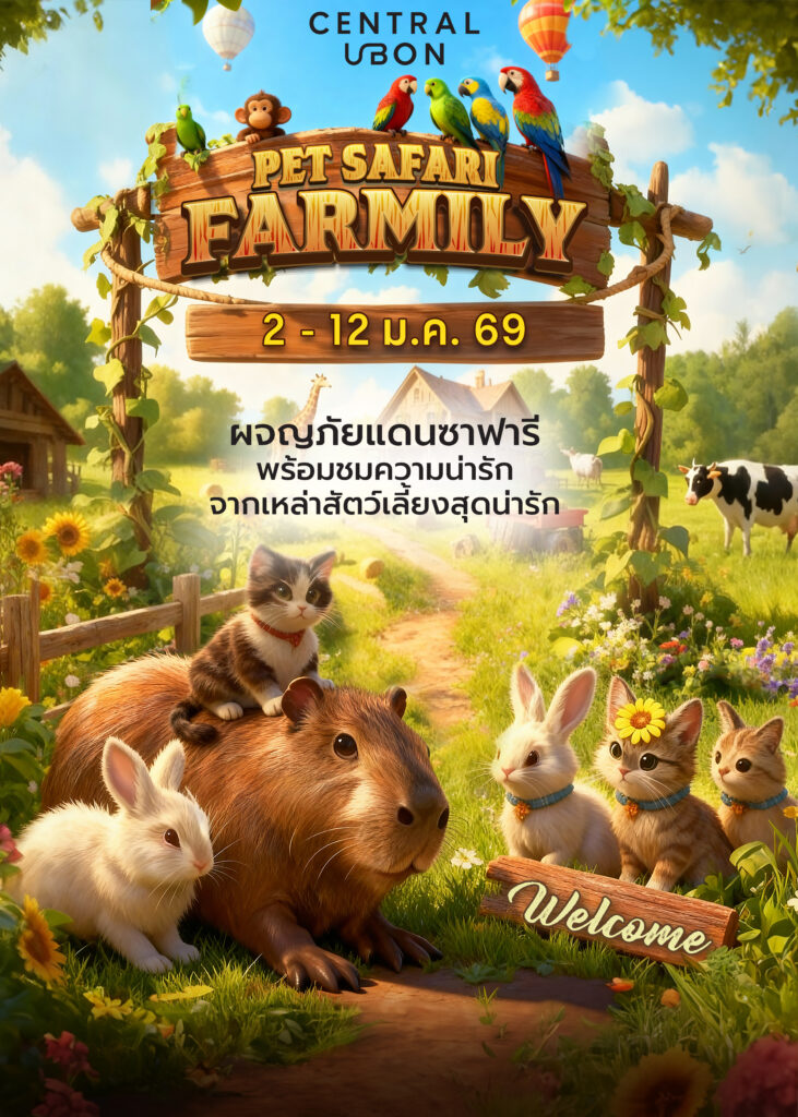 ✨Pet Safari Farmily ได้เวลาเปิดประตูเข้าสู่โลกซาฟารี ชมฟรี! กับเหล่าสัตว์สุดน่ารัก ที่จะมาขโมยหัวใจของทุกคน อาทิ คาปิบาร่า ,แมวเมนคูน งูเหลือมทอง, กิ้งก่าอีกัวน่า และตัวเตกู พร้อมพบกับกิจกรรม
