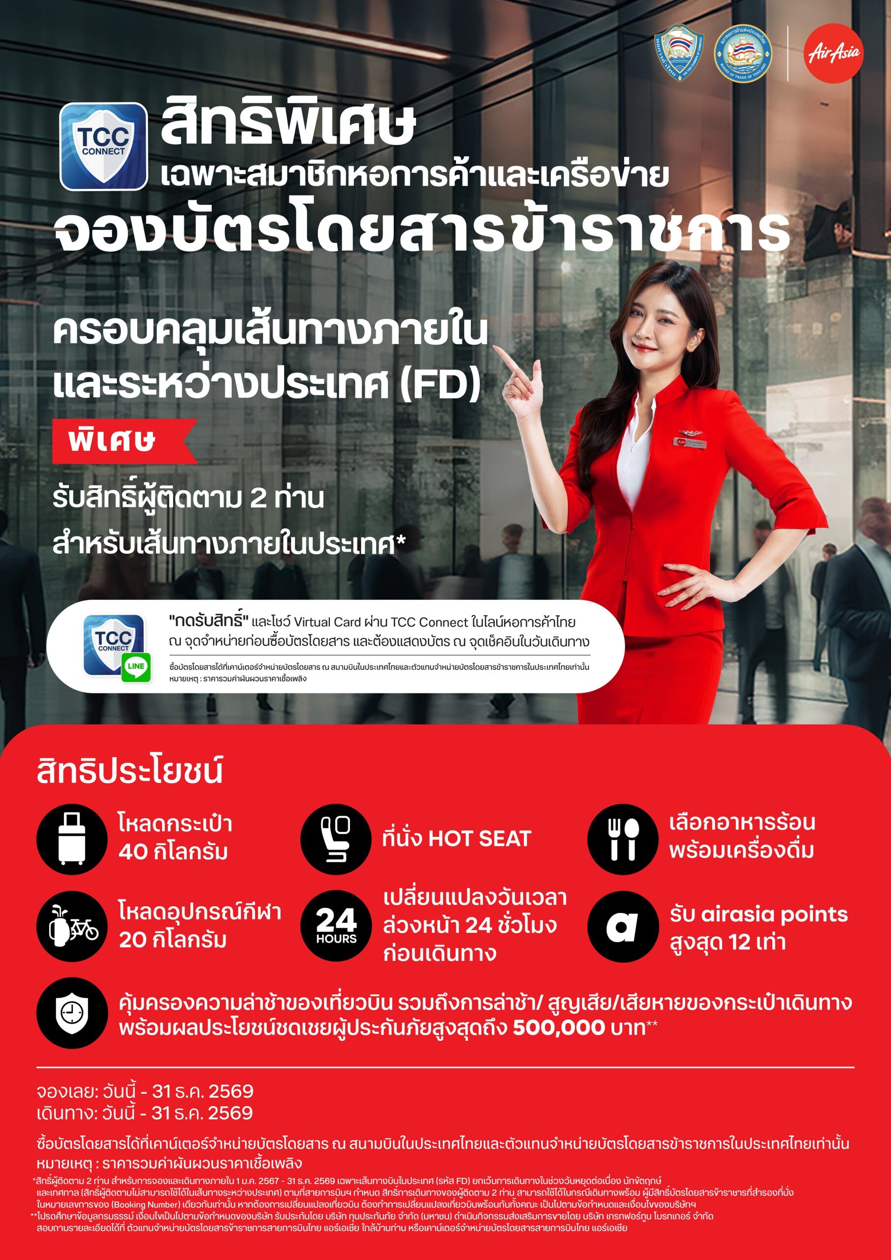 Air Asia นักธุรกิจก็ใช้สิทธิ์จองบัตรโดยสารข้าราชการได้ พิเศษเฉพาะสมาชิกหอการค้าและเครือข่าย * ทั้งเส้นทางภายในและระหว่างประเทศ (รหัส FD เท่านั้น)