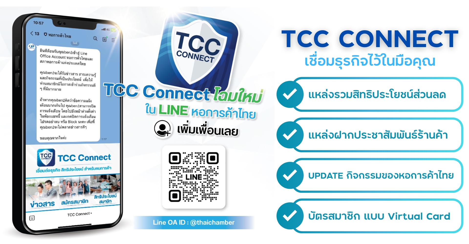 ช่องทางเชื่อมต่อสำหรับสมาชิกหอการค้าไทยและเครือข่าย เป็นแหล่งรวมส่วนลดจากพันธมิตรชั้นนำระดับประเทศ ตลอดจนส่วนลดร้านอาหาร โรงแรม ของฝาก และบริการต่างๆ จากทั่วประเทศอีกมากมาย แหล่งข่าวสารกิจกรรม และยังสามารถใช้รับ "บัตรสมาชิก แบบ Virtual Card" สำหรับยืนยันตัวตนใช้สิทธิประโยชน์ต่าง ๆ ได้อีกด้วย